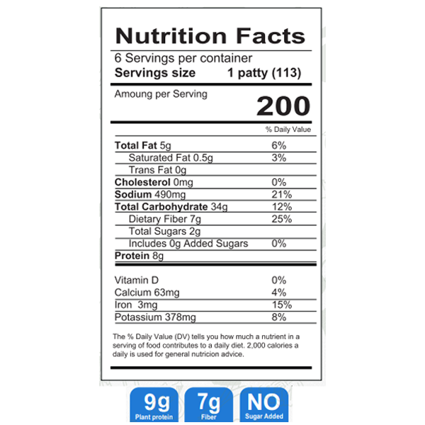 Chickpeas, Quinoa, Whole Grain Rice, Mushrooms, Eggplants, Sesame seeds, Basil, Onions, Carrots, Celery, Garlic, Oregano, Whole grain Oats and Salt.